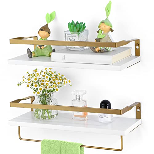 Another great affordable modern home decor option is these white floating shelves! They are super functional with a towel rack below. The floating shelves are perfect for a bathroom (for your toiletries) or kitchen (for things like seasoning).